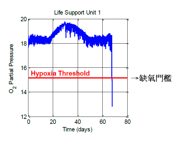 我們回頭來看看「MIT報告」,報告中所謂的68天,是分析「火星一號移民計畫」的「生命維持單位」(Life support unit)後所得出的數值,指出若沒有「就地資源利用」的補給,第一批人員抵達火星後,會因為環境中「氧分壓」(oxygen partial pressure)過低而導致大約在68天左右會有窒息的危機(如下圖)。新聞報導內沒有提到「就地資源利用」補給的問題,才導致致死的危險;而且,「MIT報告」提到的68天是預估值,報告中使用的英文單字是approximately(大約),描述口吻可沒有這篇新聞所說那樣肯定唷。