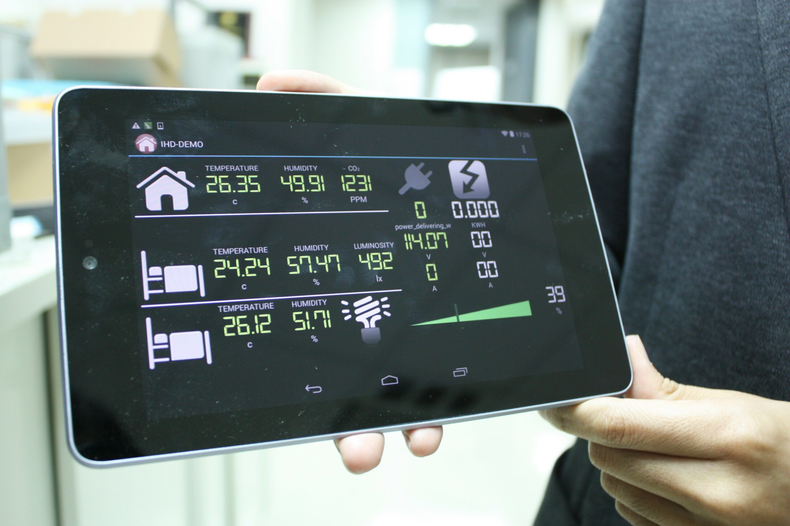 智慧家電管理系統的人性化介面,點開平板,用電、溫濕度等各式資訊一目瞭然。