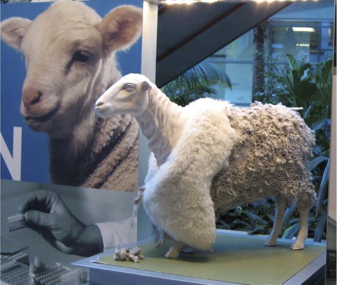 澳洲CSIRO的科學家研發一種會使髮質變差的藥劑,注入綿羊體內後,只要等待幾週讓綿羊長出一小段易斷裂的毛髮,農場主人就可以像扒香蕉皮一樣,幫綿羊脫去整件毛衣。想像這個畫面或許有點獵奇,其實綿羊斷毛的原理跟警察驗毒一樣,我們的每根毛髮都是一本日記,記錄著每天的飲食、用藥,營養不良時會導致出枯黃的頭髮,代謝後的藥物卡在毛髮裡也無所遁形。科學家發明的「生物剃毛術」,有助於減少人工剃毛所需的勞力,避免可能發生的勞力短缺,直接、立即地解決在地的產業問題。