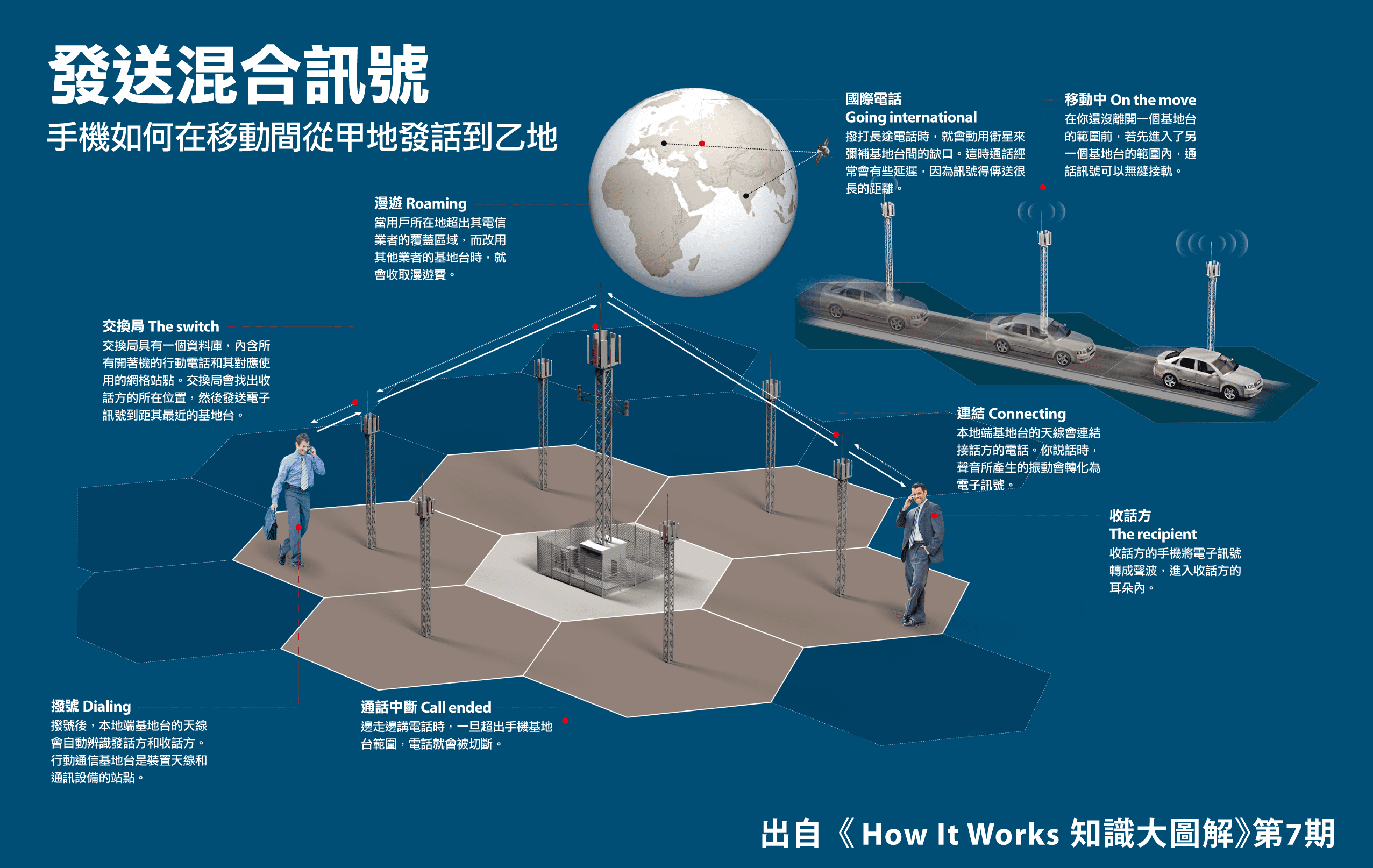 只要位在基地台的收訊範圍內,手機訊號網絡讓人能隨時隨地撥打電話。儘管有時還是需要衛星來傳送基地台無法傳輸的長途電話,但基地台網絡這種藉由接力來傳輸訊號的技術,絕對是科技史上的一項驚人突破。