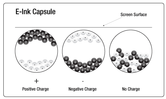 第二代的電子紙技術是由JosephJacobson在上世紀90年代所發展,其特色是以微膠囊代替傳統的小球,並且在膠囊內填充彩色的油與帶電荷的白色顆粒,並且經由外在電場的控制將白色顆粒往上或往下移動,其中當白色顆粒往上(接近閱讀者時),則顯色出白色的圖元;當白色顆粒往下(遠離閱讀者時),則顯色出油的顏色。