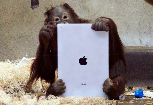 紅毛猩猩和對應的人類兒童一樣,喜歡玩iPad,不過牠們並不會沉迷其中。牠們就是不會像我們那樣,受科技所迷惑。「比如,我那七歲的兒子時時刻刻都在玩iPad,可是布迪卻不會這樣,」麥特告訴我。這孩子喜歡發光的螢幕,但卻不會一坐數小時,光是盯著它看。