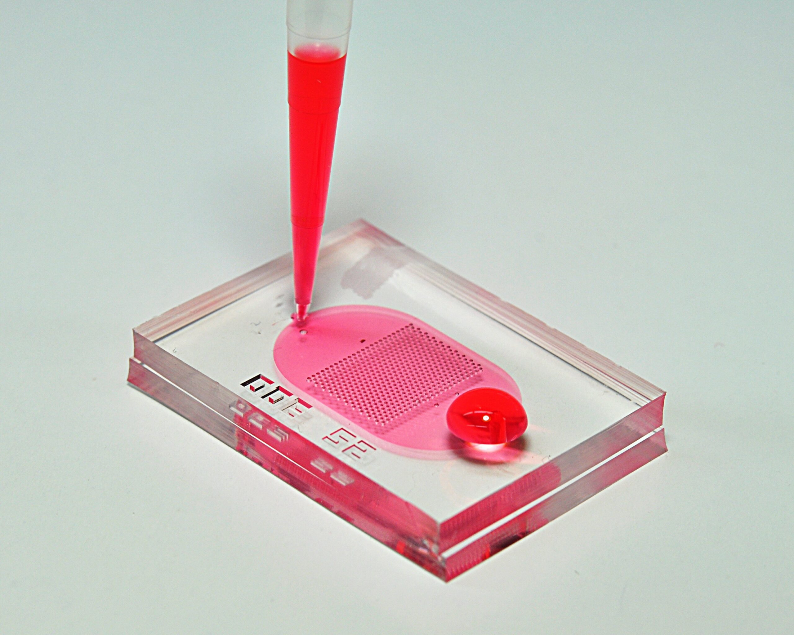 相較於此款生物晶片,傳統提取單細胞的方式相當繁複:將細胞懸浮液分注在96孔培養盤,靜置待細胞沉澱,再用顯微鏡確認盤上96個微孔中有多少個成功抓取到「一個」細胞。顯微鏡的視野塞不下單個孔洞,所以研究人員得反覆挪移盤子,如此重覆確認近百次。