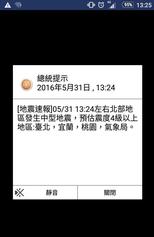 5月31日地震的簡訊,不知道為何有寫「總統提示」?