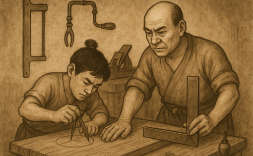 規就是圓規,矩就是L形的曲尺。莊子和孟子借用這兩種木匠常用的工具,發抒自己的思想。好了,循例該造兩個句了。