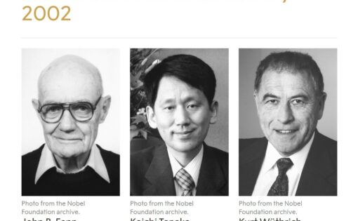 2002年諾貝爾化學獎由三位學者共享,其研究涵蓋了兩個重要領域:質譜與核磁共振。二者可解決巨大生化分子結構,此成就使得化學生物成為現今的大科學。