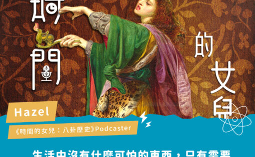 Podcast《時間的女兒:八卦歷史頻道》的主持人 Hazel,清晰幽默地分享歷史八卦,被譽為「用聽的連續劇」,短短七個月的經營,頻道即突破千萬收聽。
