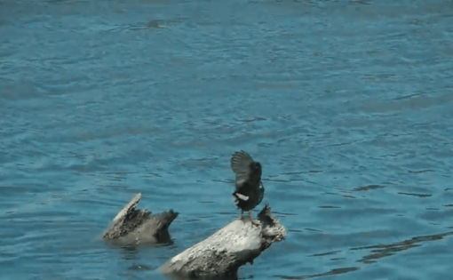 一隻紅冠水雞在嘉義縣東石鄉鰲鼓濕地水域一塊枯木上理羽,並不時高舉翅膀曬溫暖的陽光,模樣真可愛。