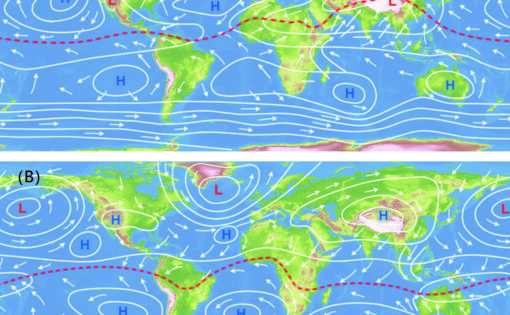 一直以來,所有的課本在解釋季風成因時都會由海陸風開始講起,解釋完海陸風的成因後,便把海陸加熱差異造成的溫差及後續的氣壓差,直接放大應用到季風的解釋上,而且認為冬季季風與夏季季風都可以用同樣的理論解釋。