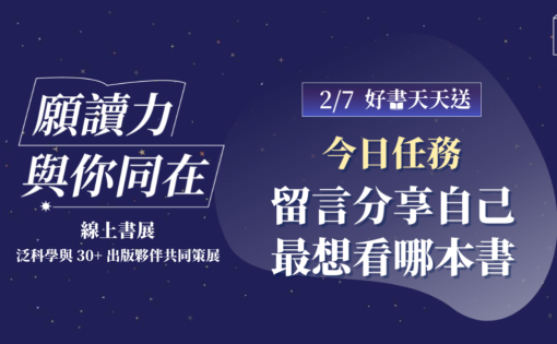「#願讀力與你同在」的天天送活動登場啦, 2/7 任務說明在此! 只要完成指定任務、在文章下方回應相關內容,就能獲得每天一次的抽書機會哦!