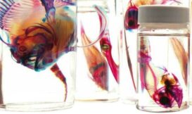 本書所利用的透明骨骼染色法,是利用特殊藥品將生物體的肌肉組織透明化後,再利用特殊染劑將骨骼近型二重染色,讓生物標本依骨骼成分成現不同的紅藍兩色。此方法步但能夠避免了在製作過程中骨骼遺失與錯位的問題;費用方面也較X光照射法來得便宜許多,同時亦提供了立體的標本觀察角度。