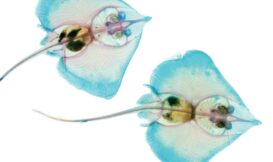 軟骨魚的骨骼由軟骨組成,為魚類中較低階的種類,所以在染色後魚體會已藍色為主。牠們主要是利用腮裂來進行氣體交換,除了少部分的鯊與魟能夠主動換氣外,大部分的軟骨魚皆需要藉由自身的移動來讓水流通過腮裂以利氣體的交換。一般而言,軟骨魚的胸鰭都偏大,且與牠們的體軸成水平,是重要的平衡器官。