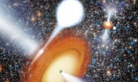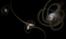 宇宙裡,黑洞從來都不是一位佳名遠播的和氣好鄰居。它們的存在總是讓周圍鄰居感覺不太舒服,雖然說它不只是把東西往肚子裡吞,在進行吞吃的同時,也會猛烈地在一陣陣打嗝中把電漿和輻射等物質噴出來以「回饋鄉里」。如果要是有兩個黑洞被放在隔壁的話,那絕對免不了會有一場拔河戰,其結局之慘烈也將可想而知。