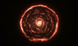 一群天文學家最近正在使用ALMA來研究年老的R Sculptoris(玉夫座R星),結果所取得的新發現可把他們嚇了一大跳,或者說:大為驚歎!因為他們在R Sculptoris周圍發現了奇怪的旋臂結構,據推測,這可能是由一顆看不見的伴星所造成的。