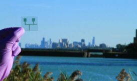 瑞士與美國的聯合研究團隊研發出一種新型感應器。這種個由載玻片覆蓋條紋狀奈米微粒所構成的元件,能探測出液體中的微量重金屬元素,未來可望應用於飲水或魚類體中毒物的檢測。