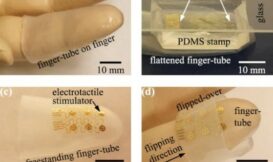 美國與中國研究人員結合半導體元件與矽膠指套,用來模仿再現指尖的精密特性,希望藉此推動先進外科手術手套的研究發展。他們使用矽奈米薄膜製作此感知平台,能以高精準度反應出手指移動及碰觸所產生的壓力與張力。