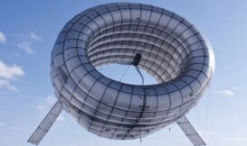 Altaeros Energies 最近推出一款空中渦輪式風力發電機(airborne wind turbine)的原型機。下面影片中這部渦輪式風力發電機有 35 呎寬(10.668 公尺),上升到 350 呎(106.68 公尺)後,發電量為傳統渦輪式的二倍。