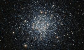 這個龐大而擁擠的球狀星團含有數萬顆恆星,而這個巨大的恆星蜂巢,是宇宙中最古老的天體之一。天文學家藉由研究像M55這樣的球狀星團來瞭解星系如何演化,以及恆星如何變老。除了M55之外,還可在影像中見到許多背景星系,其中最明顯的是星團右上角那個側向地球的螺旋星系。