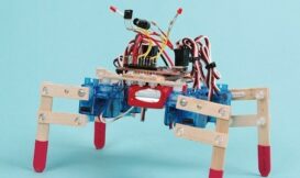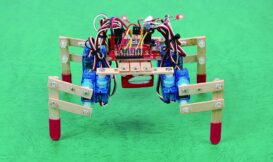 這隻我叫它「小怪獸」的四腳仿生機器人,打造完成後,有著兩顆一閃一閃十分討喜的紅色眼睛。它除了可以做伏地挺身外,還能走迷宮。當小怪獸走不出迷 宮時,兩顆紅色的眼睛會閃得更快了,並不斷地轉動自己的身體,一副著急想趕快找到出口的樣子。以下我將說明如何利用SC8來製作這臺可愛的小怪獸。