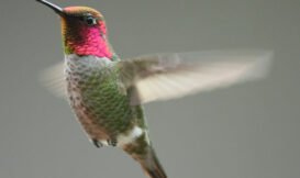 蜂鳥除了拍翅速度快之外,在某些種類公鳥還有特殊的求偶儀式。這些公鳥會在停在樹枝上的母鳥面前向上攀升,用拼高速公路的速度從高空俯衝直下,在快到母鳥附近時張開尾羽,發出讓人印象深刻的聲音。這聲音怎麼來的啊?