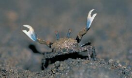 牠的頭胸甲及步腳都是灰褐色,並密佈著深色的斑紋,形成極佳的保護色,如不揮螯,很難發現牠們的蹤跡。兩隻小巧的螯腳