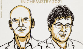 2021年諾貝爾化學獎得主於10月6日揭曉!由德國學者李斯特(Benjamin List)和美國學者麥克米倫(David MacMillan)共同獲獎;他們的獲獎原因是推動了「不對稱有機催化劑」(asymmetric organocatalysis)的發展;諾貝爾委員會指出,他們開發出的有機催化劑不但對藥物研究產生巨大影響,也使化學合成的過程更加環保。