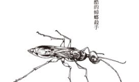 連這樣頑強的蟑螂也有天敵,那就是扁頭穴蜂[又稱翡翠蟑螂穴蜂(emerald cockroach wasp)]。其犀利的外骨骼透著青綠色的金屬光澤,這種小型蜂廣泛地分布在熱帶區域。這種蜂將活生生的蟑螂當作幼蟲的飼料而進行繁殖,其手段可說是殘忍至極。